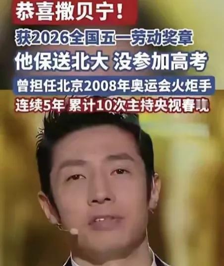 活该撒贝宁骄傲一辈子,继康辉敬一丹之后,撒贝宁也获得五一奖章 撒贝宁拿下“全国