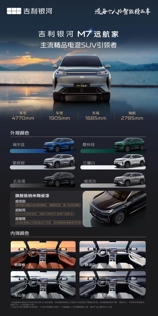 吉利银河M7远航家上市,四款配置,六个车漆颜色、四个内饰配色,限时价10.98-