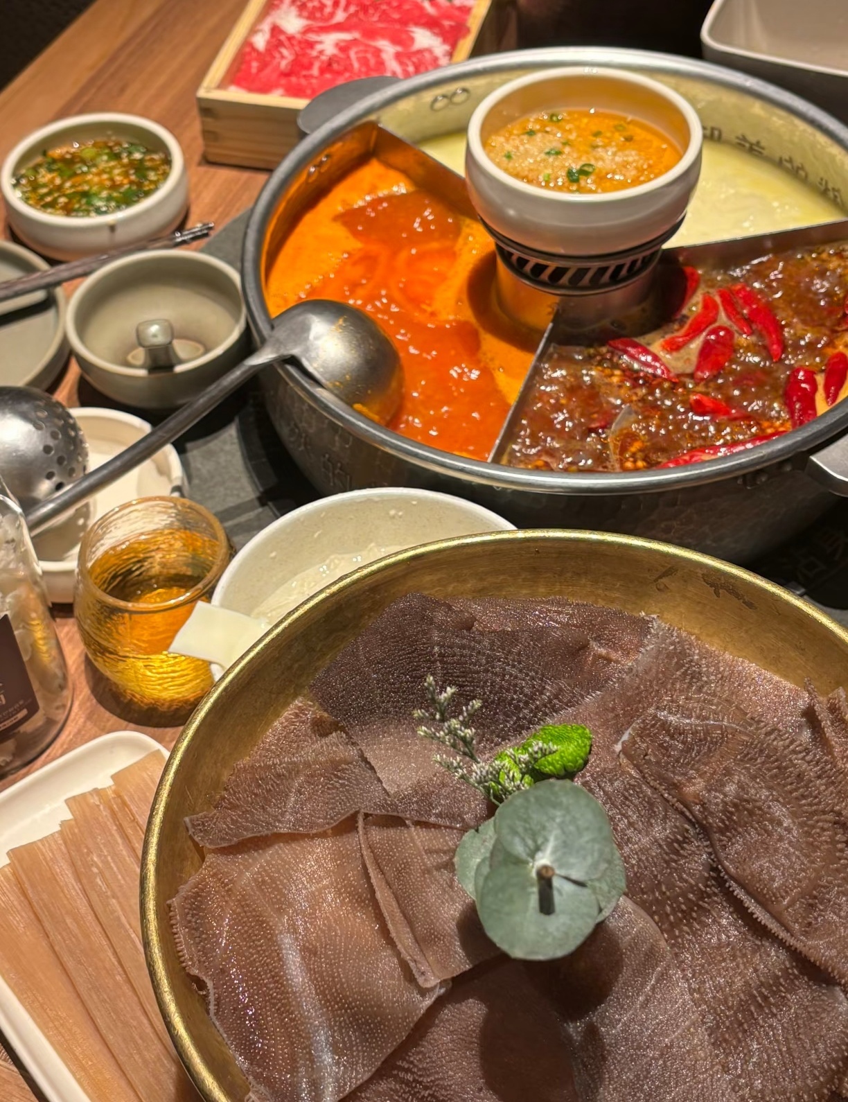 当代人的火锅三件套 毛肚必须拥有姓名!高蛋白低脂肪,吃起来毫无心理负担~ 滚烫红汤里翻个身,捞起就是极致鲜香,脆到能听见咯吱声,这口快乐谁懂啊~