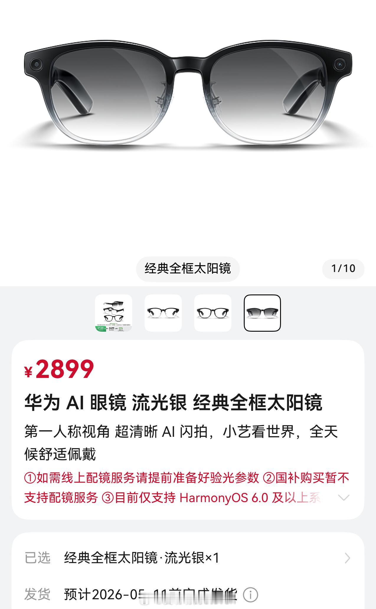 我把流光银的墨镜片换成了蓝光片,我自己感觉挺好看的,我讲道理华为AI眼镜设计成墨镜可以,但是最好是变色的,室外墨镜,室内和暗光环境透片,不然像我这种一直带着的进商场以后感觉自己有点装…眼里有绝活儿
