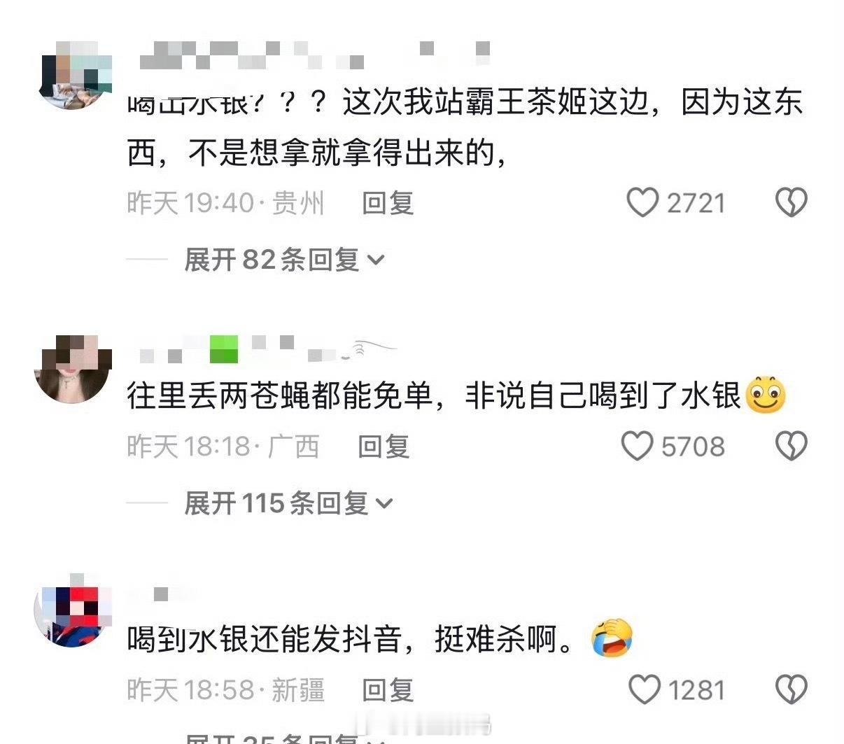 霸王茶姬疑喝出水银市监局已介入喝出水银是不是有点夸张了?后厨为什么会有水银呢