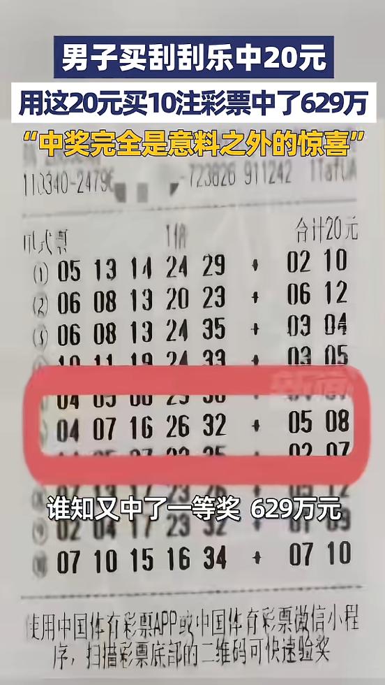 这就是命啊!安徽芜湖,一男子在彩票店买了注刮刮乐,刮开后中了20块钱,他就让老板随机打10注大乐透彩票,没成想,晚上开奖后他就用这20块钱买的彩票中了629万的大奖