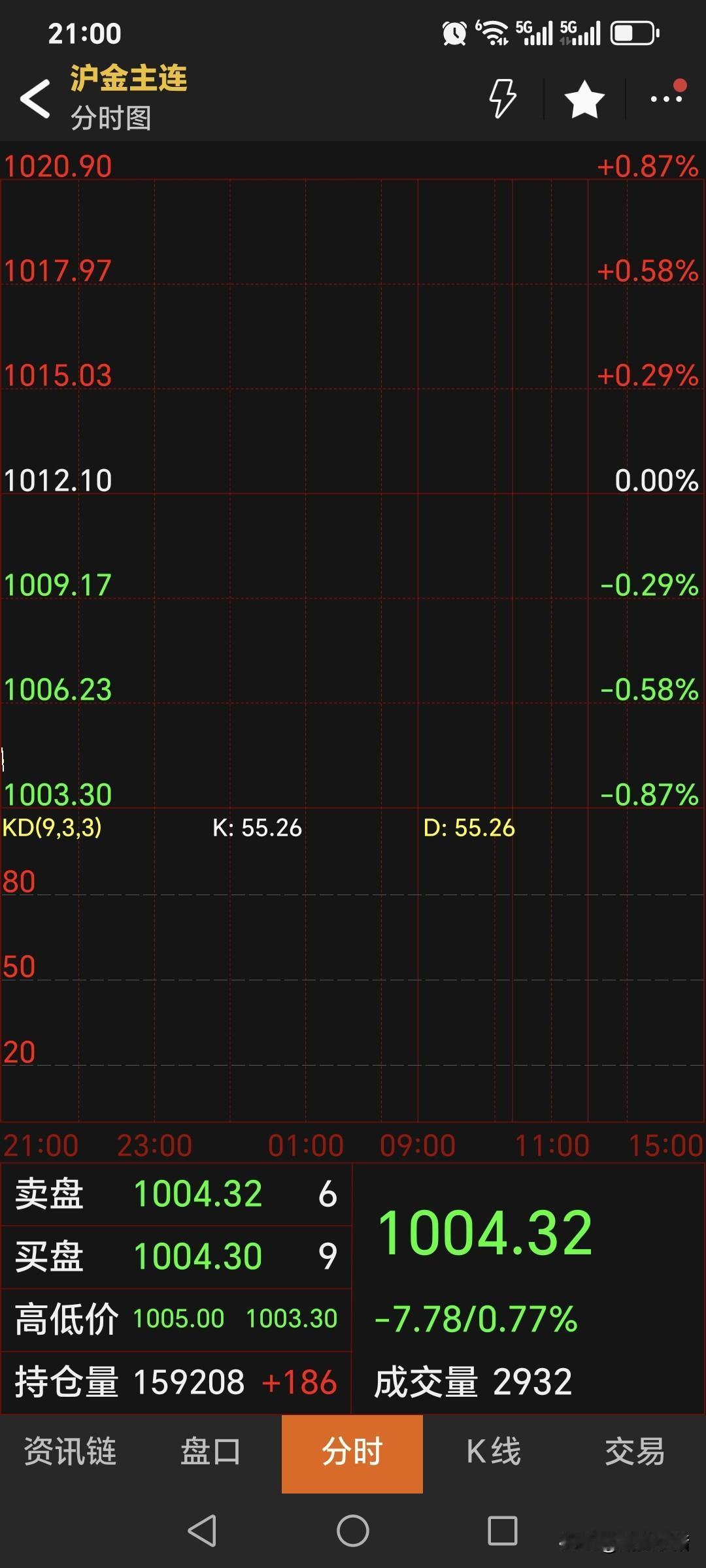 夜盘, 国内黄金期货 如期低开,符合判断! 主力合约开盘1005元, 低开7.1