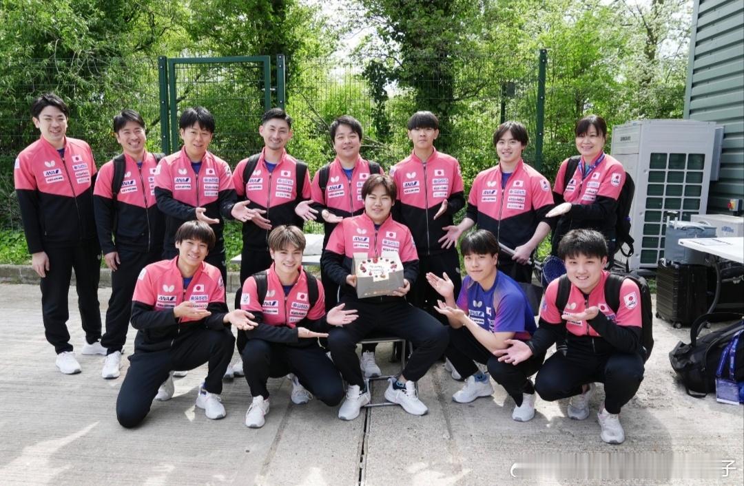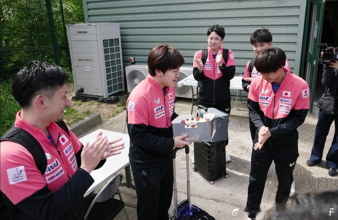 2026年国际乒联伦敦团体世乒赛日本男队今天上训前为松岛辉空庆祝19岁生日🎂