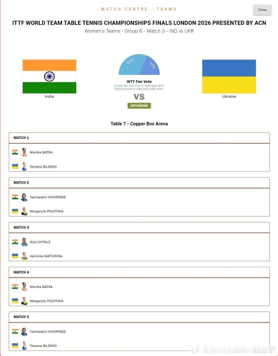 印度🇮🇳VS乌克兰🇺🇦 第六组巴特拉VS比连科戈尔帕德VS皮索特斯卡奇塔莱VS梅提妮娜巴特拉VS皮索特斯卡戈尔帕德VS比连科