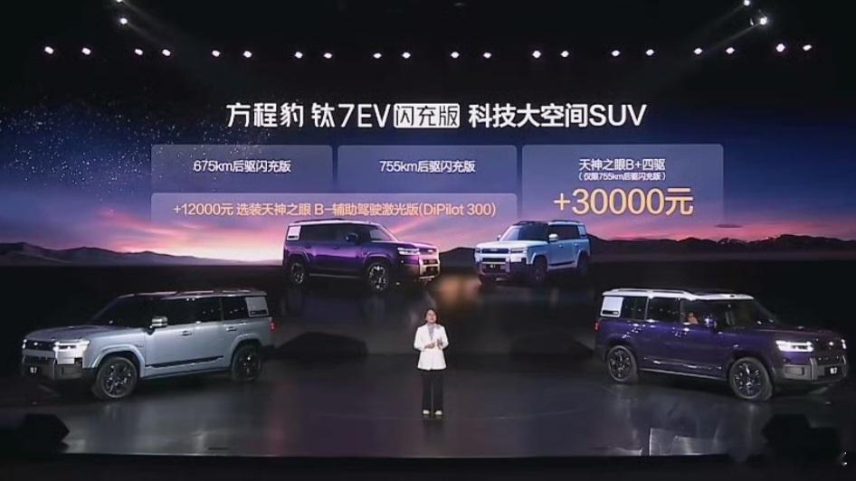 方程豹钛7EV闪充版这价格真没的说了吧?今晚纯电版的方程豹钛7上市了,闪充