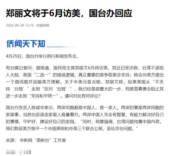 离谱!刚结束大陆参访,转头就敲定 6 月访美,郑丽文这番操作太耐人寻味!扬言要给美方画台海路线图,还大放厥词谈中美关系,逻辑全程崩塌。挟洋自重、妄图左右逢源,打错算盘了!国台办早已亮明底线。