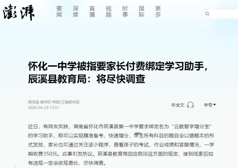 同时教育局也做出了处理,责成辰溪一中立即叫停该 APP 的推送行为,对高二年级组进行了严肃的批评教育,还会在辖区内所有学校举一反三,加强管理,规范办学行为。