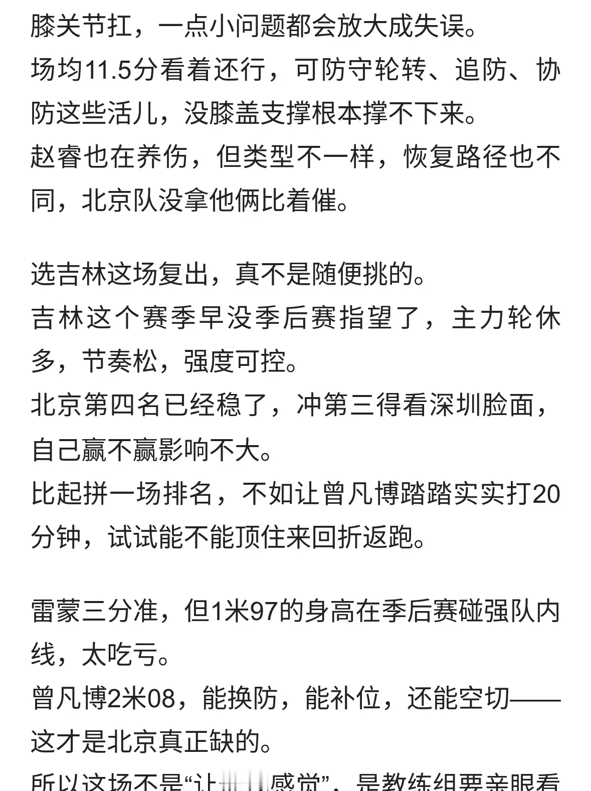 时隔80天复出!曾凡博基本确定出战收官战 本季已缺席30场