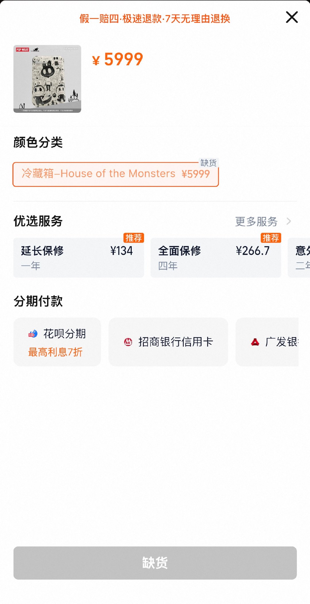【5999元Labubu冰箱秒空】泡泡玛特回应Labubu冰箱秒空 4月30日晚,泡泡玛特跨界布局家电领域的首款产品——THE MONSTERS生活家系列冷藏箱在电商平台正式开售。这两款以Labubu为主题的冰箱分为Home款和House of the Monsters款两个版本,均采用全球限量发售策略,每款仅999台,统一售价5999元。