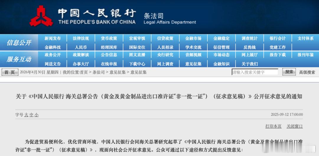 【黄金进出口再松绑】进一步优化黄金及黄金制品进出口准许证 4月30日,中国人民银行、海关总署联合对外发布公告称,决定进一步优化黄金及黄金制品进出口准许证“非一批一证”管理,持续简政放权,促进贸易便利化,优化营商环境。新规自2026年6月1日起正式施行。