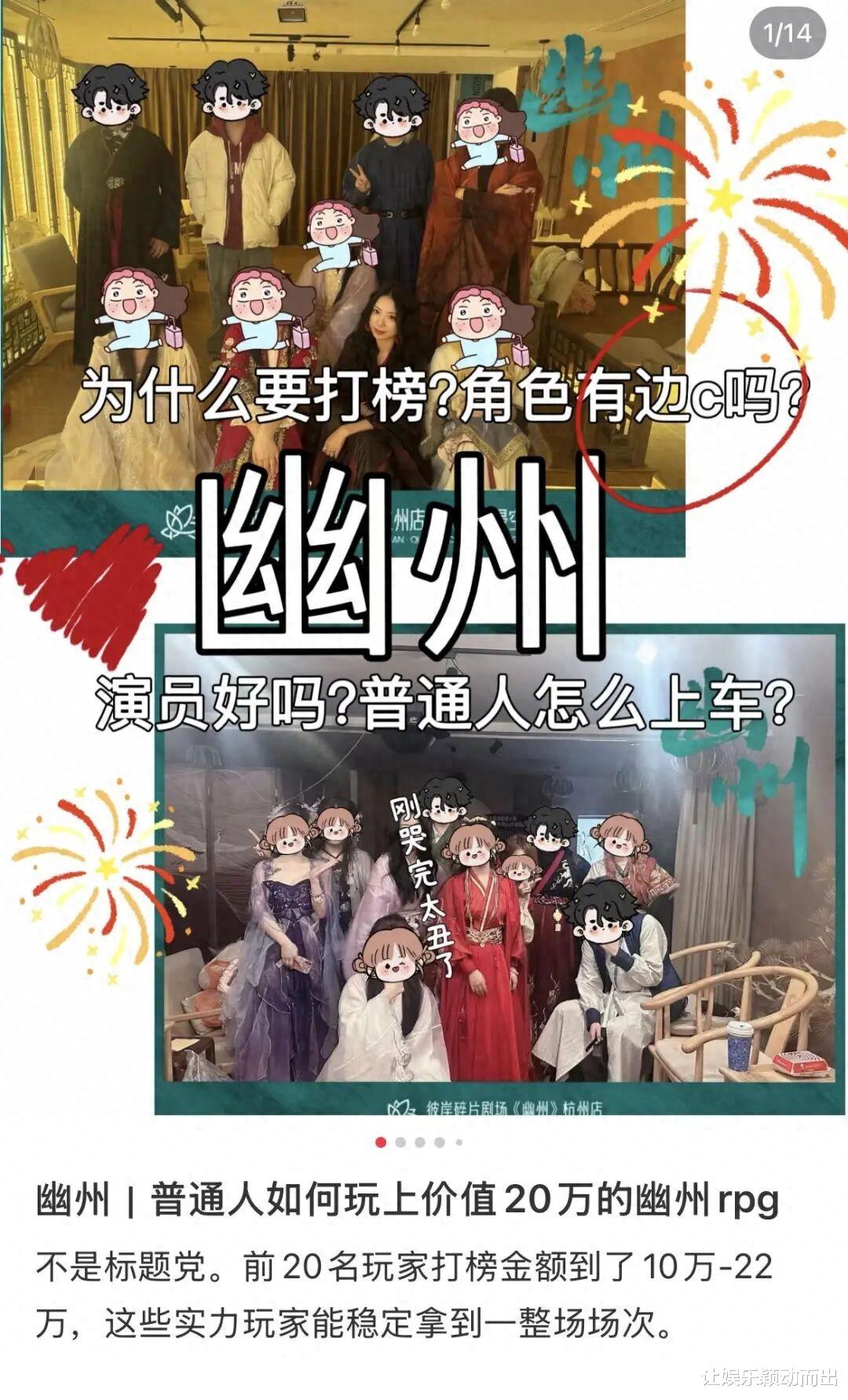 它的爆火并非偶然:一方面,扎实的剧情、精良的剧场硬件的专业的演员互动,能让玩家获得极致的沉浸体验;另一方面,在多数剧本杀仅设置2~3个恋陪位的当下,《幽州》10个玩家中就有7个恋陪位。而业内都知道,只有恋陪位才有市场。