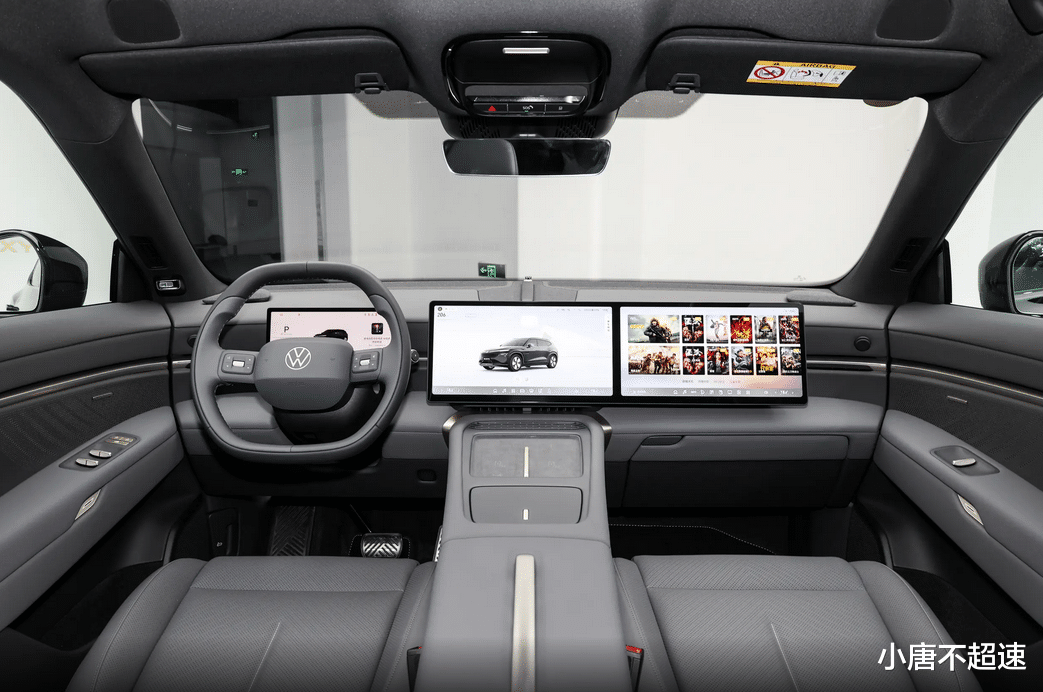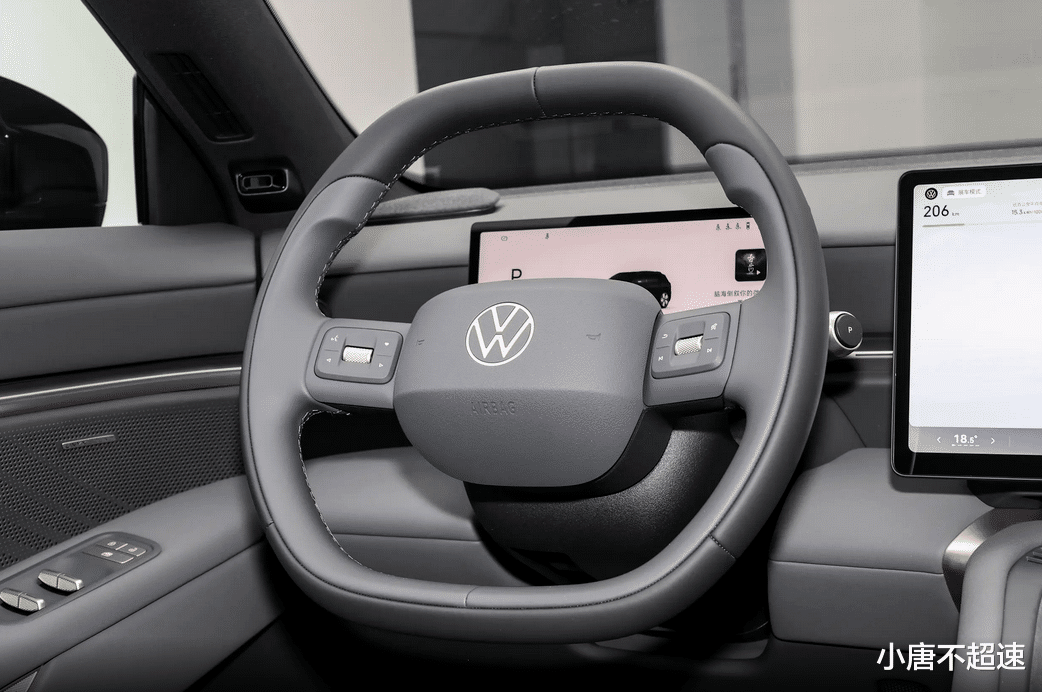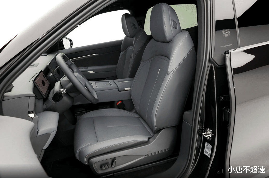 内饰方面,与众08搭载高通骁龙SA8295P芯片,配备10.25英寸全液晶仪表与双14.96英寸2.4K超高清双联屏,支持车载WiFi、AI空间、智慧语音、导航及场景模式等功能,并可通过OTA实现远程升级,双辐多功能方向盘回归实体按键与滚轮设计,中央带有可发光的大众徽标。主驾座椅支持12向电动调节(含4向腰托)、加热、通风及记忆功能。