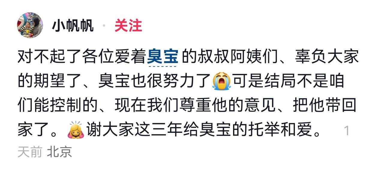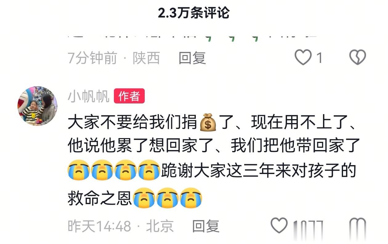 妈妈这条视频是3月29日发布的,当时大家还以为只是治疗没有进展选择了放弃,但没想到孩子这么快就走了,当时家长还表示,孩子已经尽力了,在尊重孩子意见的情况下,要把孩子带回家了。