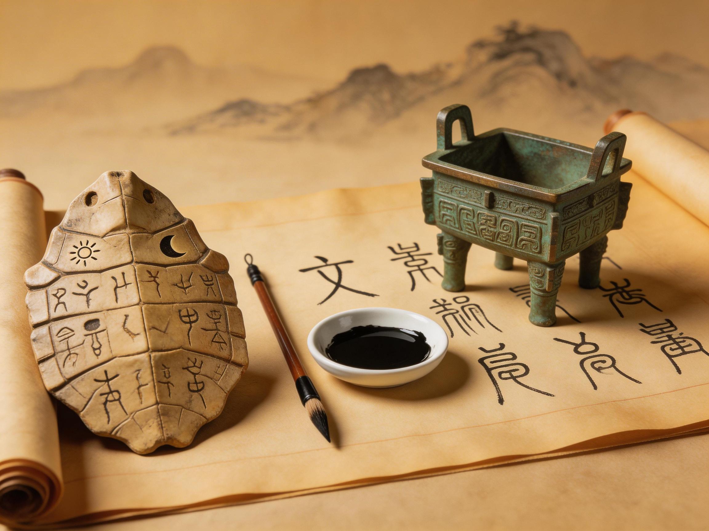 这套系统,代代相传。画着画着就简化了,写起来快了。到了商朝,甲骨文已经有了今天汉字的雏形。它不是某个人一拍脑袋设计出来的,而是几千年文化积累的自然产物。
