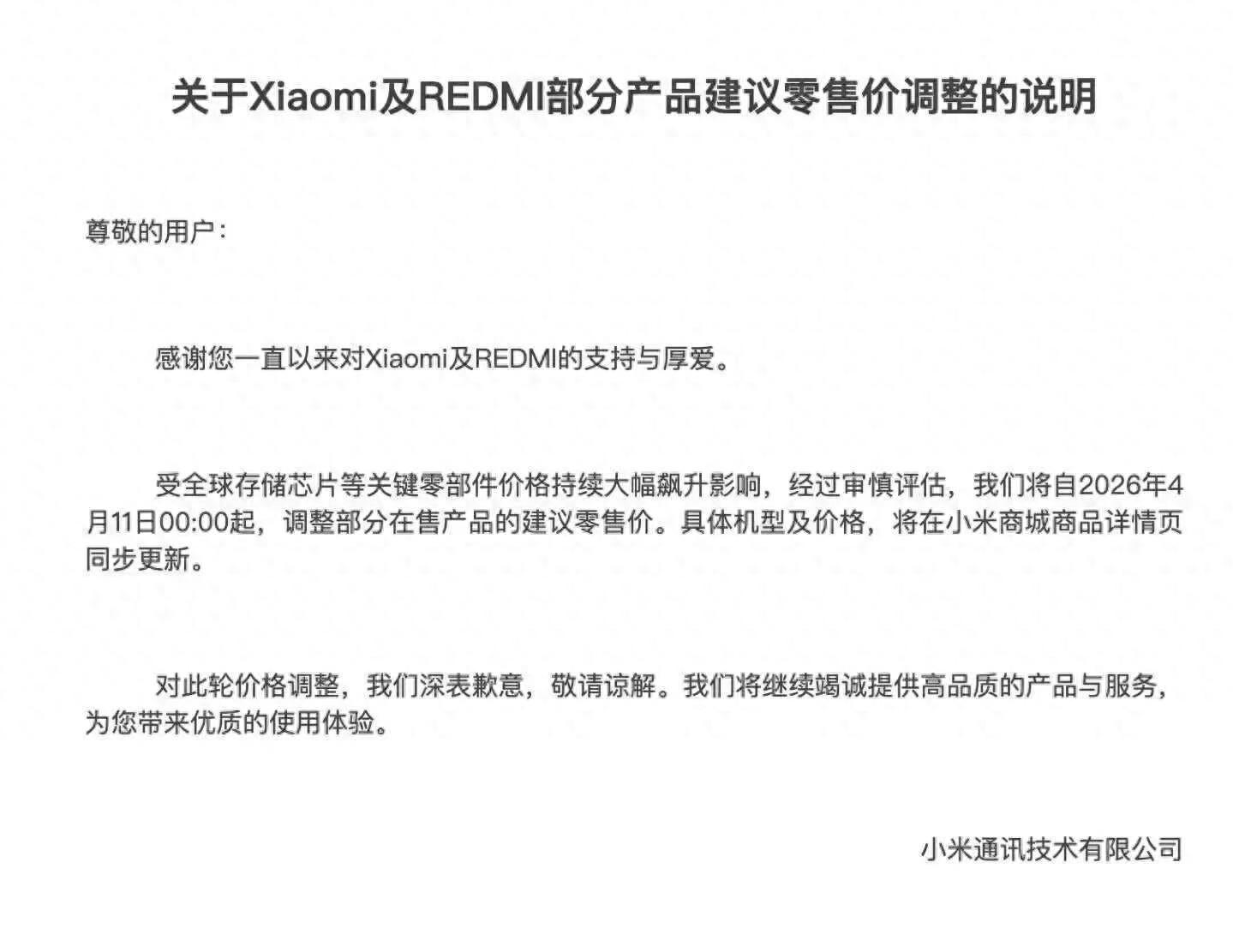 相信大家也看到了,小米(包含红米)也宣布在4月11日开始涨价,国内几大手机厂家目前仅剩华为一家未涨价。