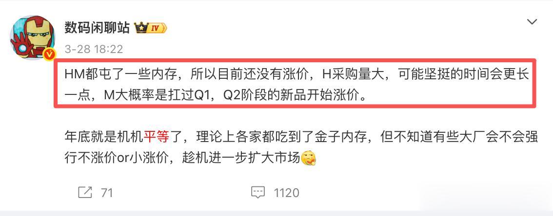 这与之前的预估一致,HM两家屯的内存稍微多一点,其中H最大,坚挺的时间会更长一点。M家扛过了第一季度,第二季度也存货不多了。