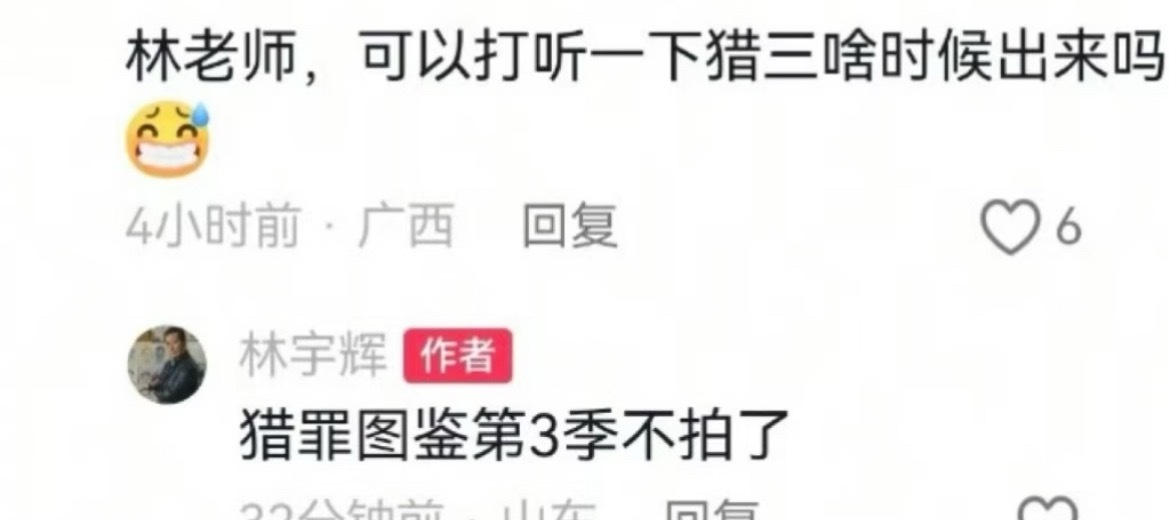 剧粉非常想看《猎罪图鉴3》,但更想看成熟的,高质量,好剧情的猎罪图鉴3,不想这个IP被随意对待,请柠檬好好打磨剧本,尊重主演沈翊,这样,才能给观众带来更好的《猎罪图鉴3》!