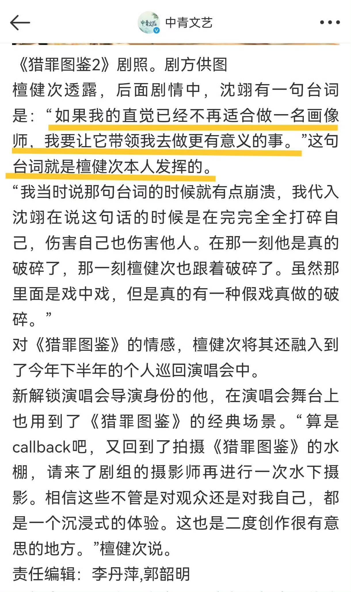 记住了,是猎罪图鉴不能没有檀健次的沈翊,而不是檀健次不能没有猎罪。