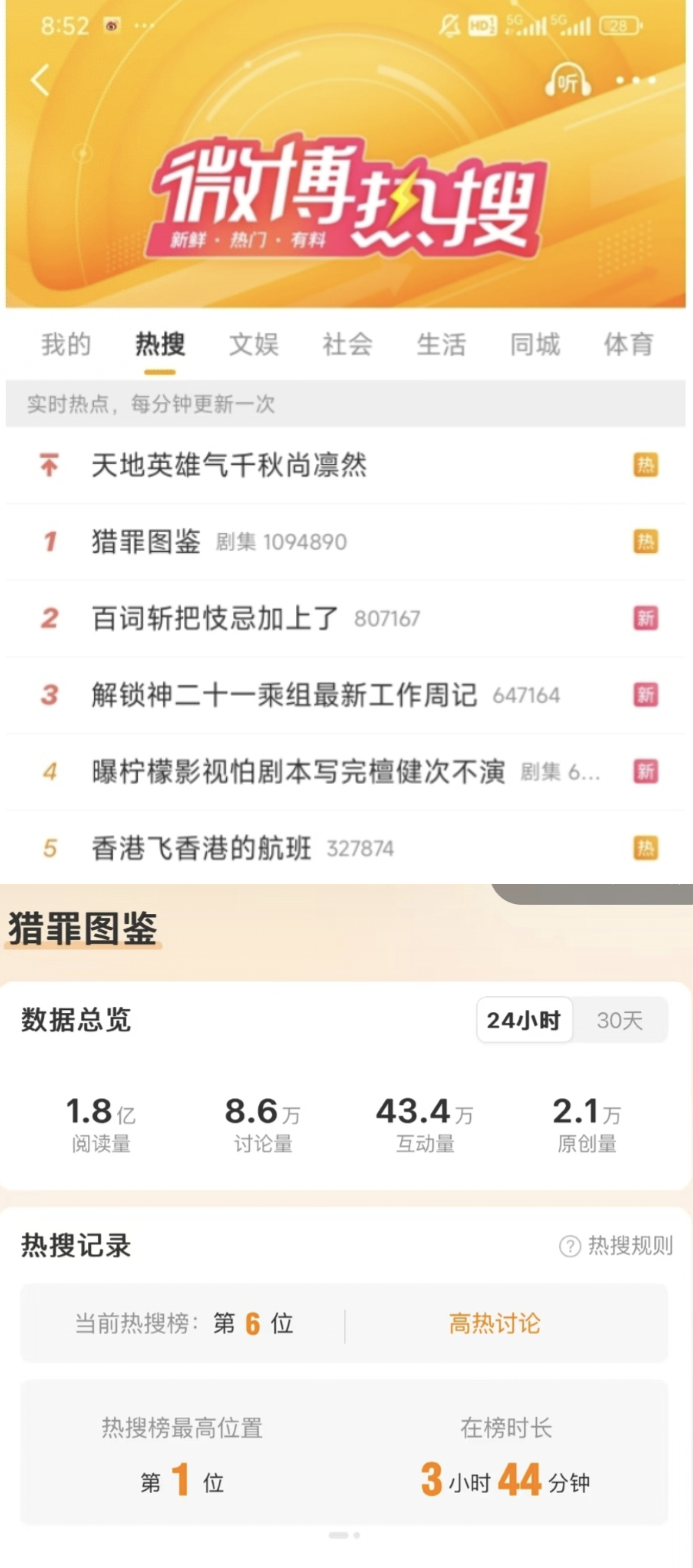 对真爆剧有了实感,一有点风吹草动就会霸榜热搜!昨天下午就因为一句话,《猎罪图鉴》直接霸榜热搜第一名,几个小时内阅读量将近两亿!