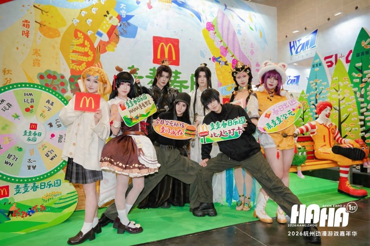 4月4日至6日,2026杭州动漫游戏嘉年华(HAHA漫展)在杭州大会展中心火热启幕,40000+平方米的场馆内,二次元爱好者齐聚一堂,共赴这场春日文化盛宴。麦当劳以“麦麦24节气”为主题,也在现场打造了一座漫画风格的“麦麦春日乐园”,连接Z世代同好。