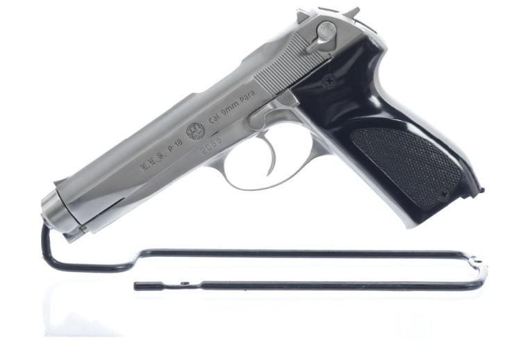 斯太尔 Pi-18 型自动手枪,采用德国工程师巴尔尼茨克在二战末期于德国设计的结构方案。