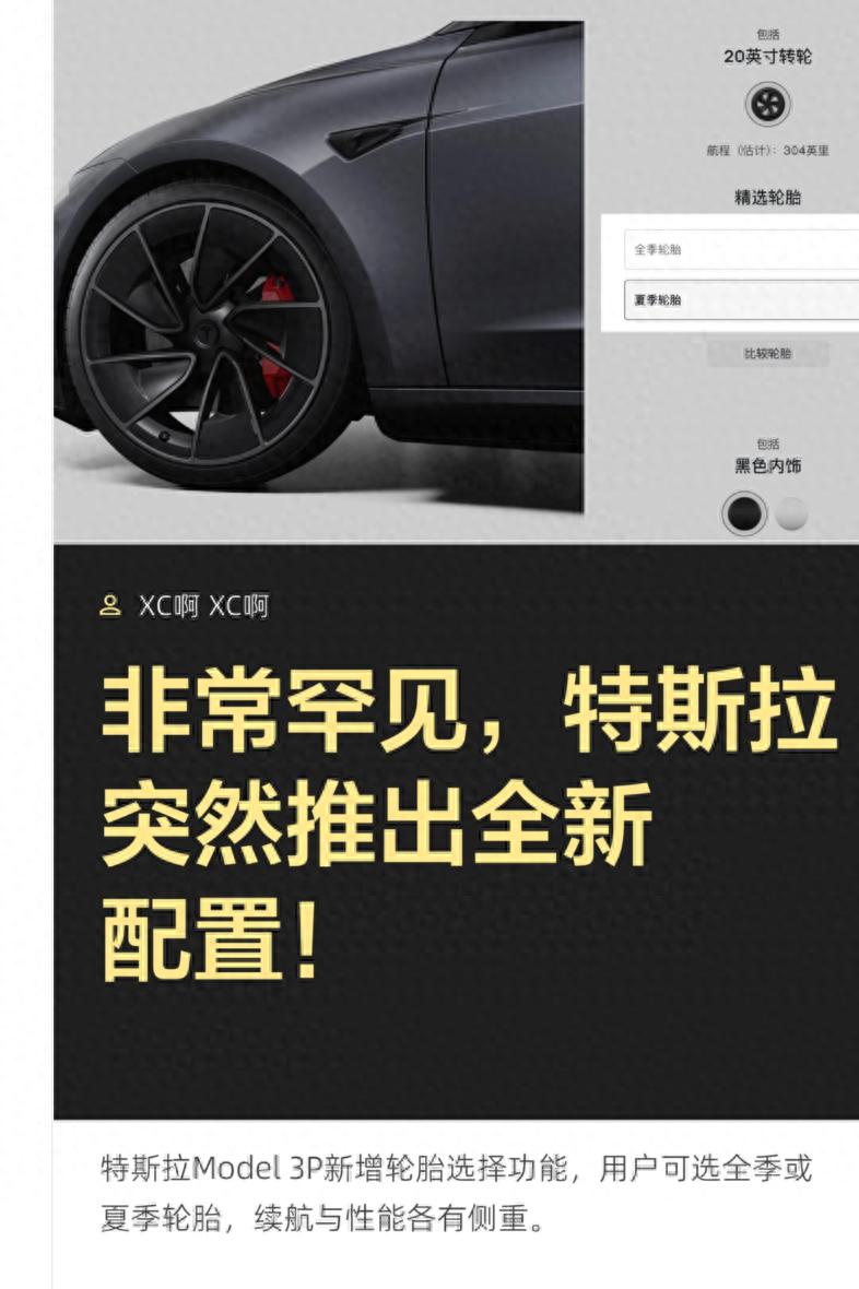 在新能源汽车市场,特斯拉一直以极简的产品策略、固定的配置方案著称,车型版本精简、选装选项有限,是品牌长期以来的标志性特点。而近期,特斯拉 Model 3 推出了一项极为罕见的全新配置调整,正式新增轮胎选择功能,用户可根据自身需求,自主选择全季轮胎或夏季轮胎,这一变动打破了品牌长期以来的固定配置模式,不仅为消费者提供了更灵活的购车选择,更直接关系到车辆的续航表现、操控性能与日常用车体验,对于每一位关注特斯拉、计划选购 Model 3 的用户而言,都有着至关重要的参考意义。