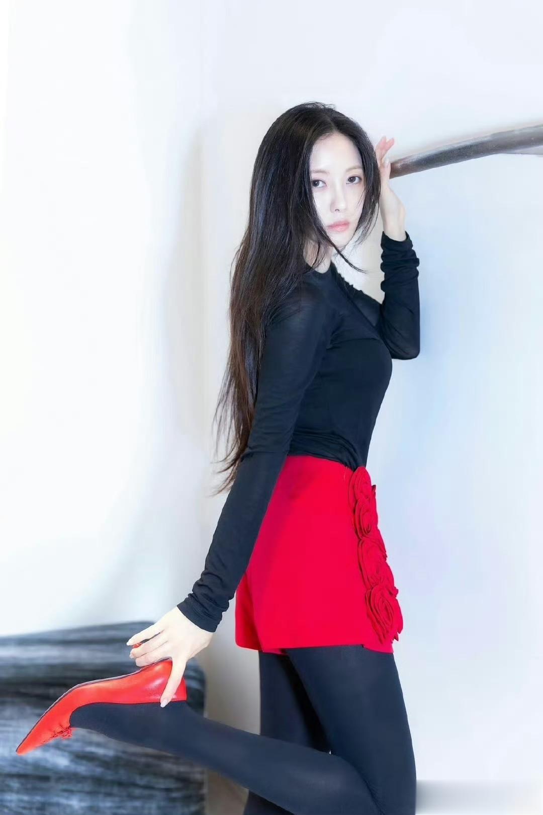 作为T-ARA的“性感担当”,她从不是单纯靠颜值出圈,深谙扬长避短的穿搭法则——以“延伸线条”为核心,高腰剪裁+贴合腿型的丝袜,轻松优化比例,37岁依旧保持九头身好身材