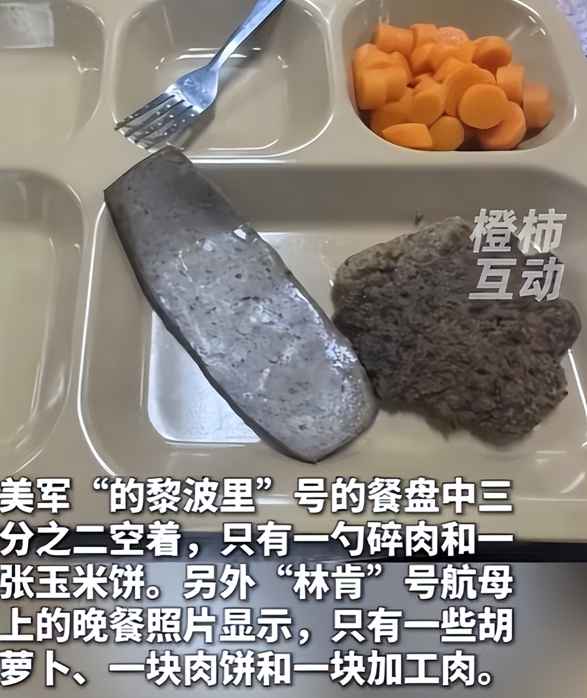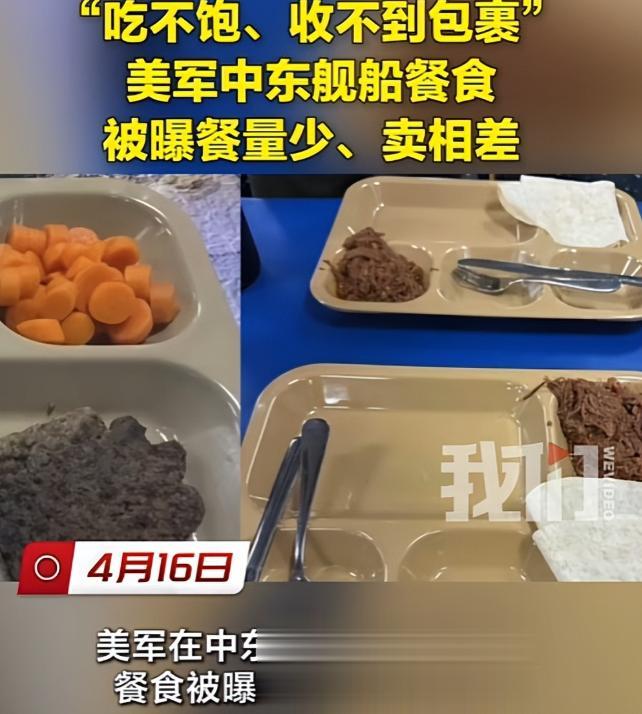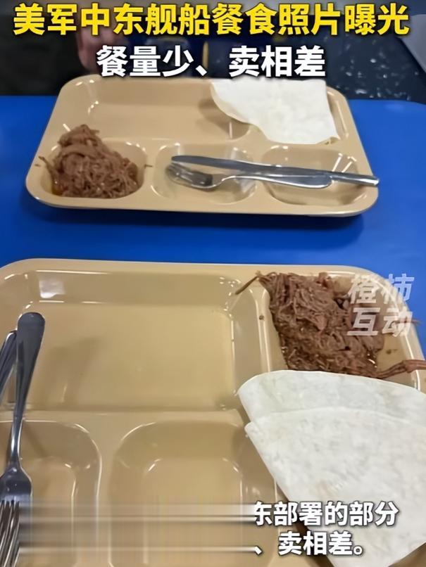 “的黎波里”号两栖攻击舰的午餐,餐盘三分之二空着,只有一小勺碎牛肉和两张玉米饼;“林肯”号航母的晚餐,更是只有少量水煮胡萝卜、干涩肉饼,还有粗糙的合成加工肉制品。有前线舰员抱怨:“每天都饿肚子,连基本温饱都保证不了,哪还有精力打仗?”