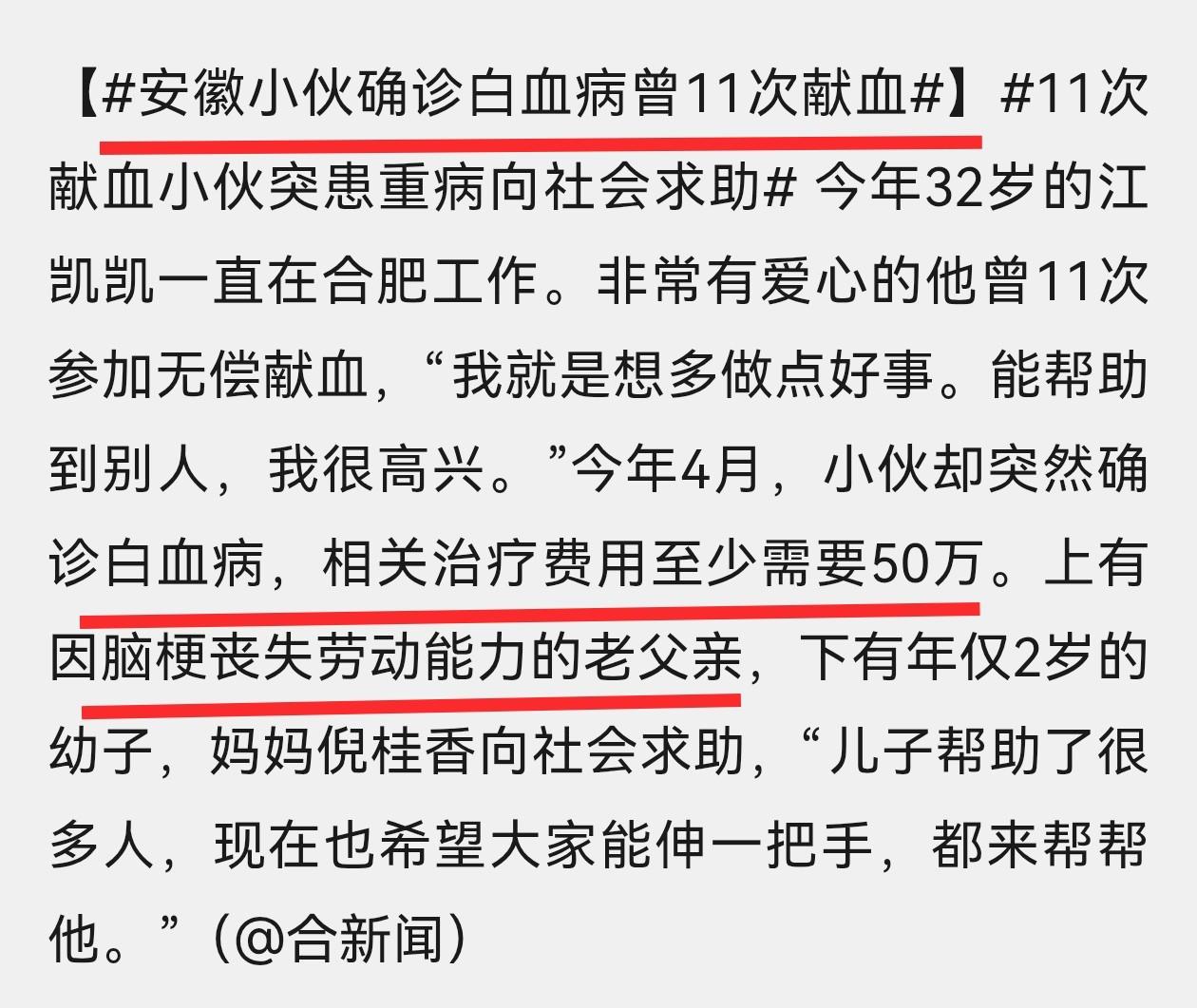 很多人估计还记得2025年4月份安徽合肥小伙江凯凯患病的事情,当时被查出患有白血病,但由于家庭条件不好,需要大量费用引发社会关注。