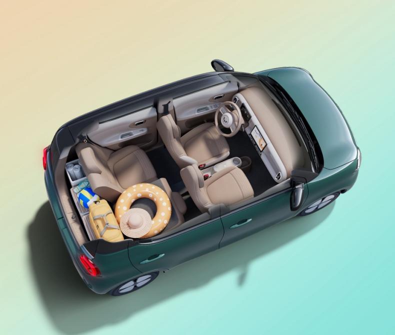 与此同时,第五代宏光MINIEV也传承了第四代车型的四门四座结构,在3268×1520×1575mm的车身尺寸下,前后排空间进行细致分配,上下车更加从容,而且全车也优化了20处储物空间,在多人出行的情况下依旧可以满足储物需求。在需要更强装载能力的时候,也可以选择放倒座椅后排,从而获得838L的后备厢,购物、露营都能满足。