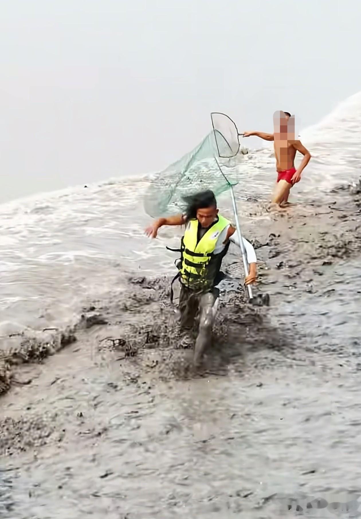 说白了,就是在潮水到来时,渔民要冲进潮头,用网兜捞取被汹涌江水拍晕或搁浅的鱼。这不仅是和鱼搏斗,更是在和瞬息万变的潮水赛跑,是一场拿生命做赌注的“游戏”。