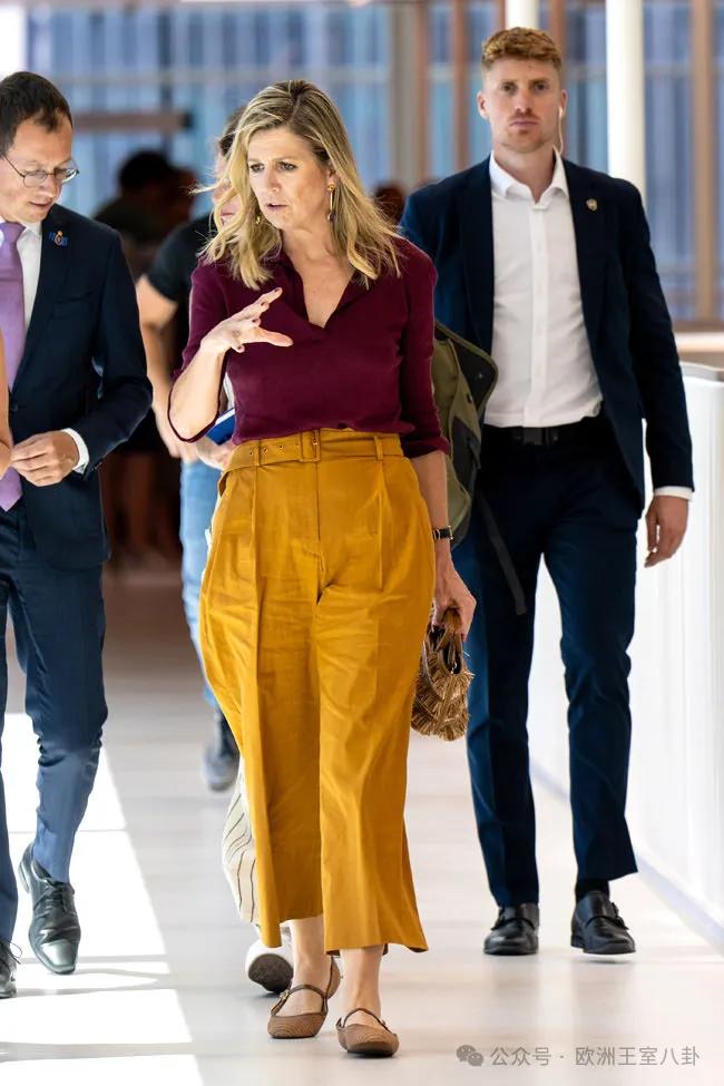 理论上阔腿裤穿着舒服,也能一定程度上遮挡大腿屁股等部位的赘肉。比如卢森堡大公夫人斯蒂芬妮对阔腿裤的爱一直深沉