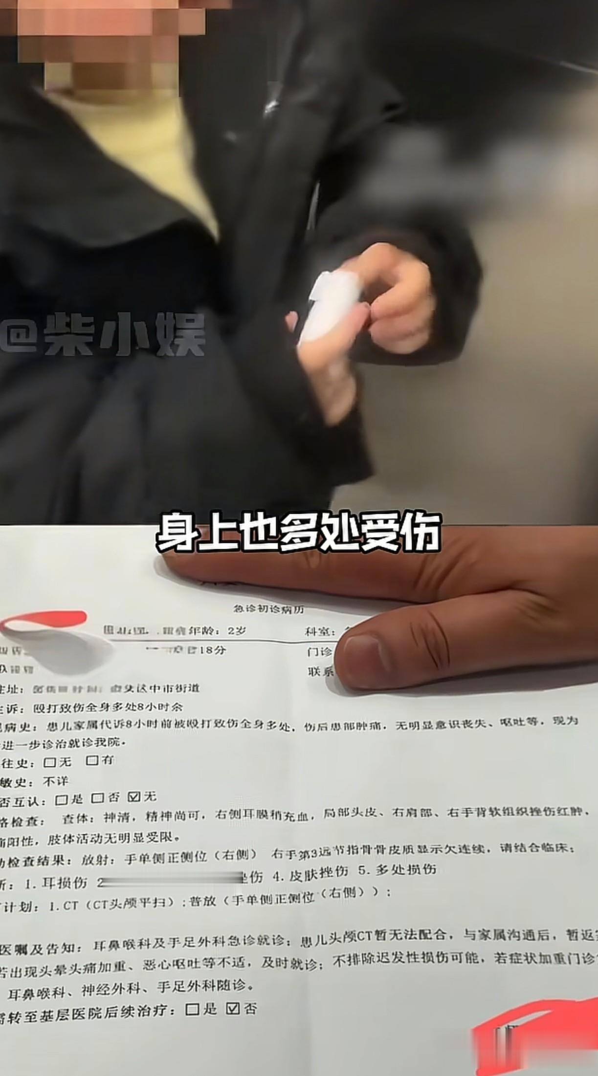 事后,店家夫妇抱着女儿前往就近医院查看伤势,得到的结论是2岁女童的右手指骨骨折了,身上还有多处受伤。