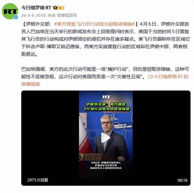 伊朗和以色列同时“补刀”伊朗外交部发言人巴加埃4月6日公开质疑:美军行动地点与飞行员位置相距甚远,这根本是一场以营救为幌子的“掩护行动”。