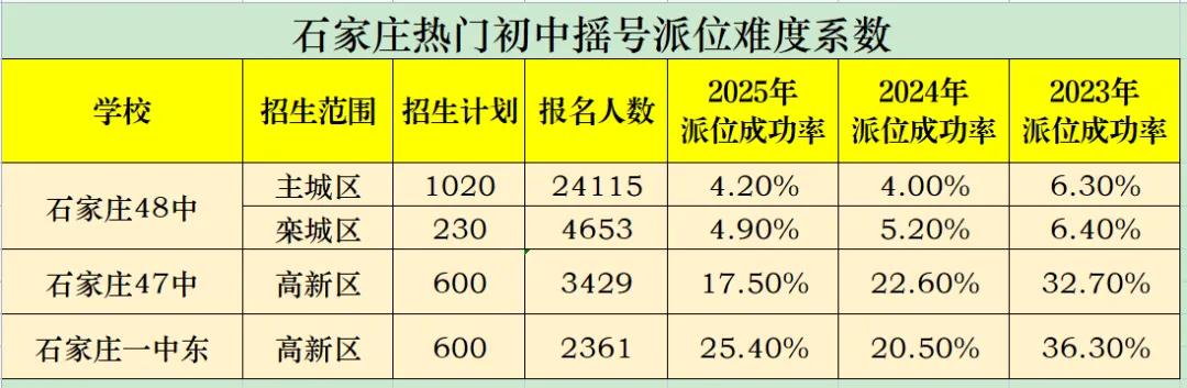 首先是7月初,主城区和栾城的家庭要参加48中的摇号,然后高新区的家长要在47中和一中东之间进行选择。相对来说,这3所学校的摇中难度比较大,尤其是48中,这两年能摇上的概率不到5%,今年小升初的孩子不少,可能难度更大;而47中和一中东的摇号成功率略高一些。有人说,47和一中东怎么选?从去年的报名情况看,47中报名的人数多一些,可能是因为学校的环境和住宿条件更好,中考成绩更稳定。而一中东今年才有第一届毕业生,这次的中考成绩或将影响学校摇号的报名人数!