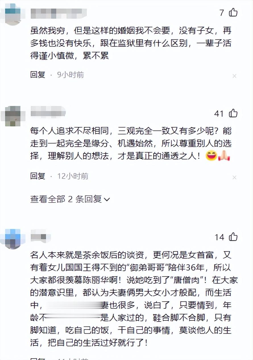 陈女士曾因年龄差主动回避陪他出席活动,坦言“迟先生那么漂亮,我去不合适”,给足了彼此空间。