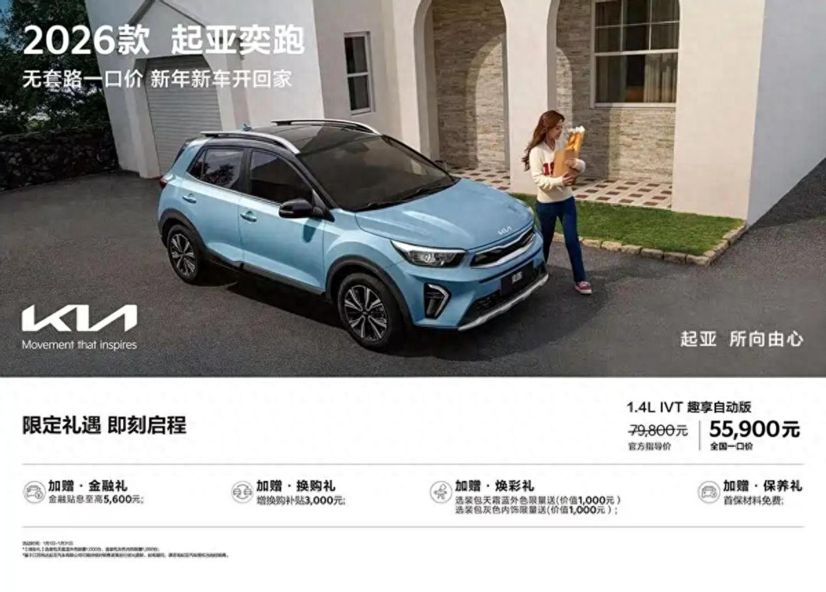 今年年初,起亚推出“全国一口价”政策,2026款奕跑1.4L自动版定价5.59万元,K3 1.5L舒适优享版定价6.99万元,纸面降幅感人。