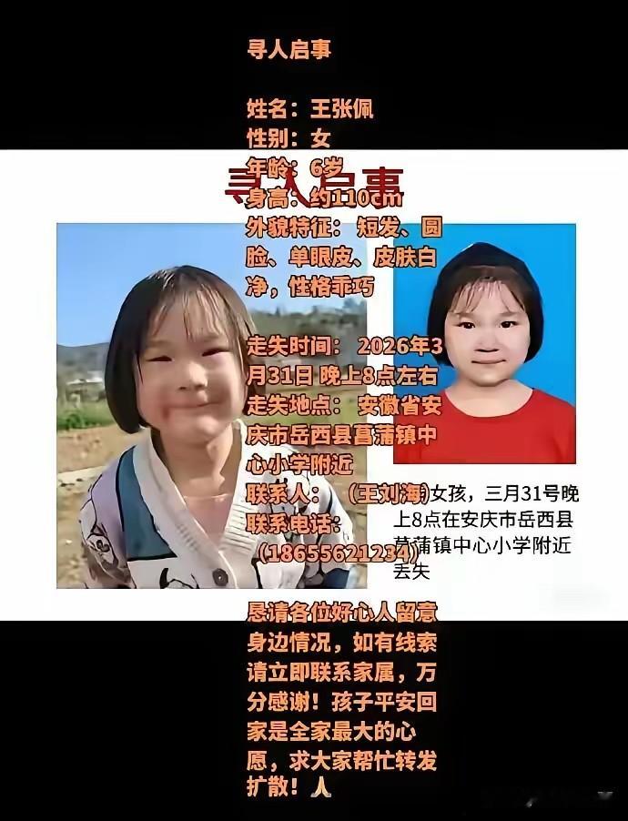 3月31日晚上,安徽岳西县菖蒲镇,6岁的王张佩在家门口那条再熟悉不过的小巷里,消失了。