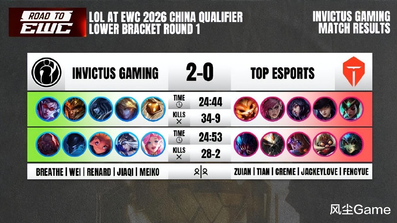第二把滔搏哥,全程只拿了两个头,人头达到了夸张的28:2,两场比赛时长加起来,只有49分钟多点,这毫无疑问,是一场人机局,第一周打完,两队都是3连胜,排在积分榜前三,没想到IG和滔搏的差距,会大到这种地步,两队的状态,完全不在一个级别,滔搏5个人,没一个有优势的。