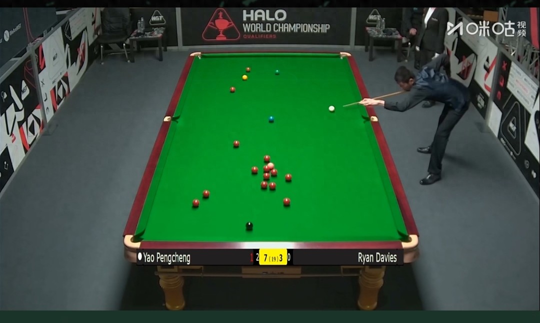 4月7日斯诺克世锦赛!第一轮资格赛,中国选手姚朋成10-9绝杀瑞安戴维斯晋级第二轮资格赛!姚朋成第一阶段7-2领先,险些被逆转翻车!