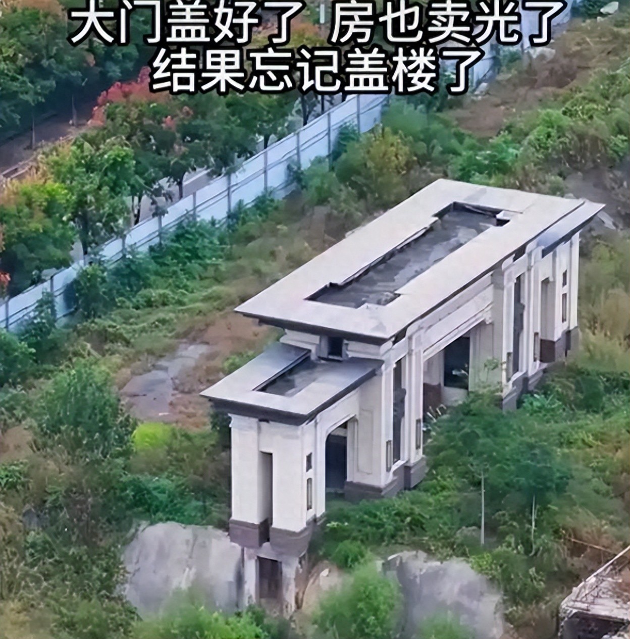 当年金光闪闪的大门,如今孤零零矗立在荒地上。大门依旧存在,但家的归属感和安全感却远离了每一个曾经相信它的人。