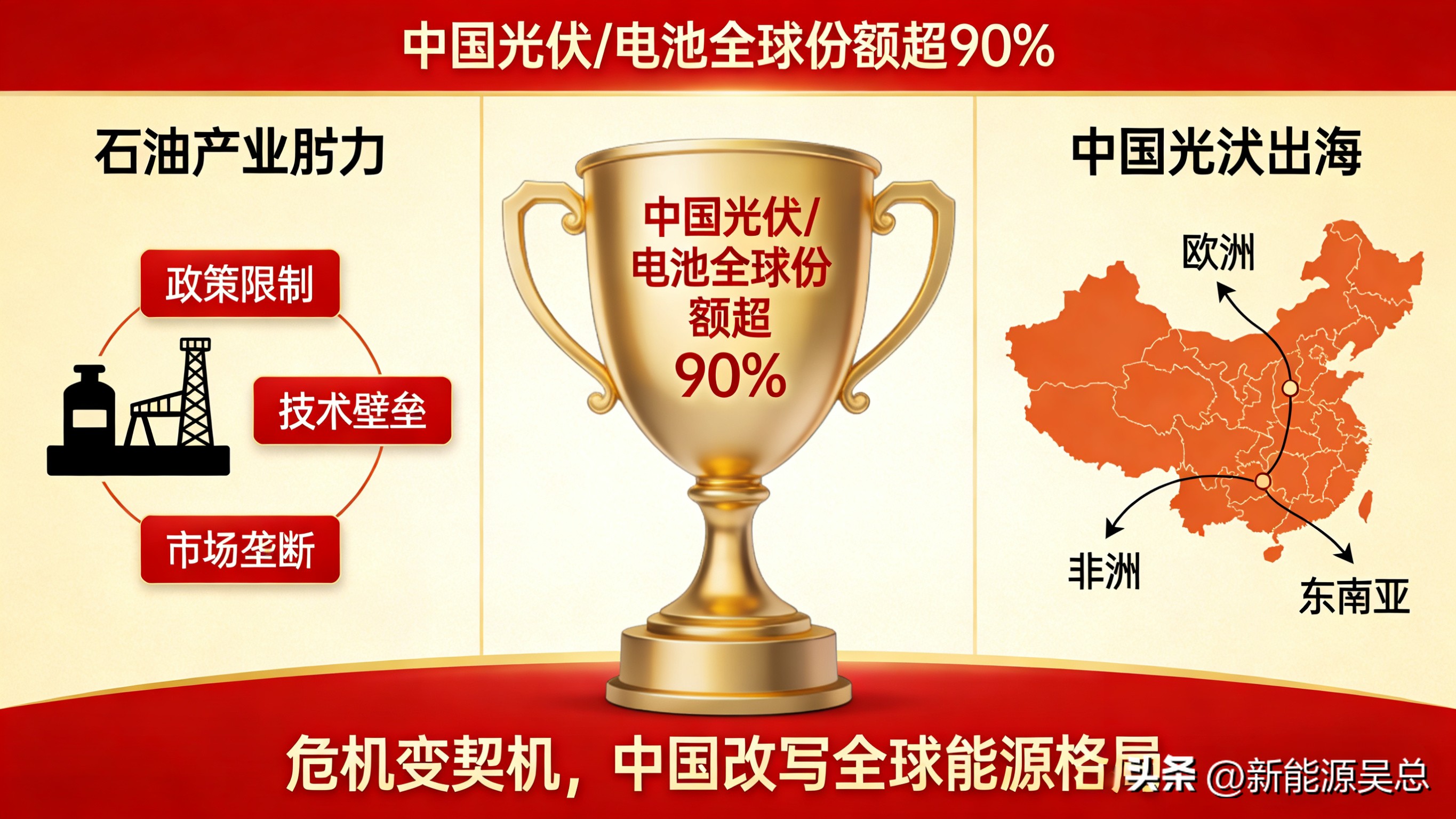 从过去的“石油资源霸权”,逐步走向“光伏制造优势+技术主导”的新时代。谁掌握光伏和储能的技术、产业链、成本优势,谁就能在未来能源体系中拥有话语权。