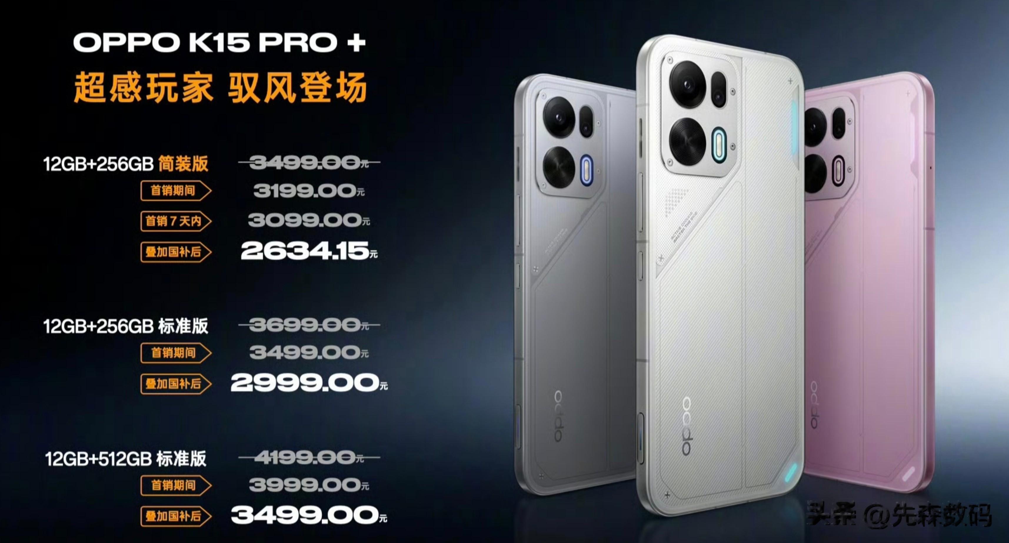 再看K15Pro+价格:12G+256G:简装版:3499元/首销期3199元/首销7天内3099元