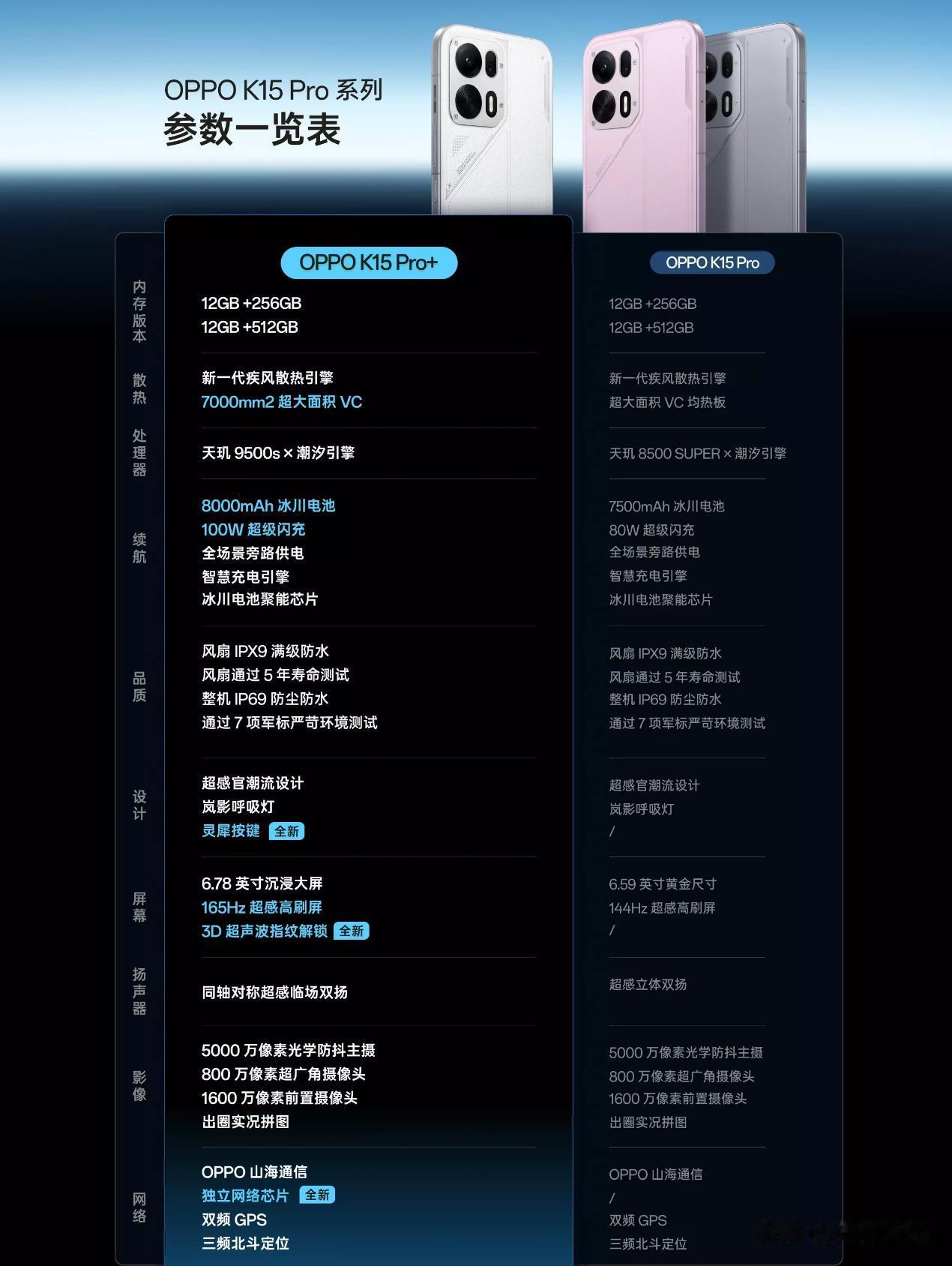 OPPO今天发布了K15Pro系列,这次只有K15Pro和K15Pro+,并没有标准版K15,看来K系列也要冲高端了。