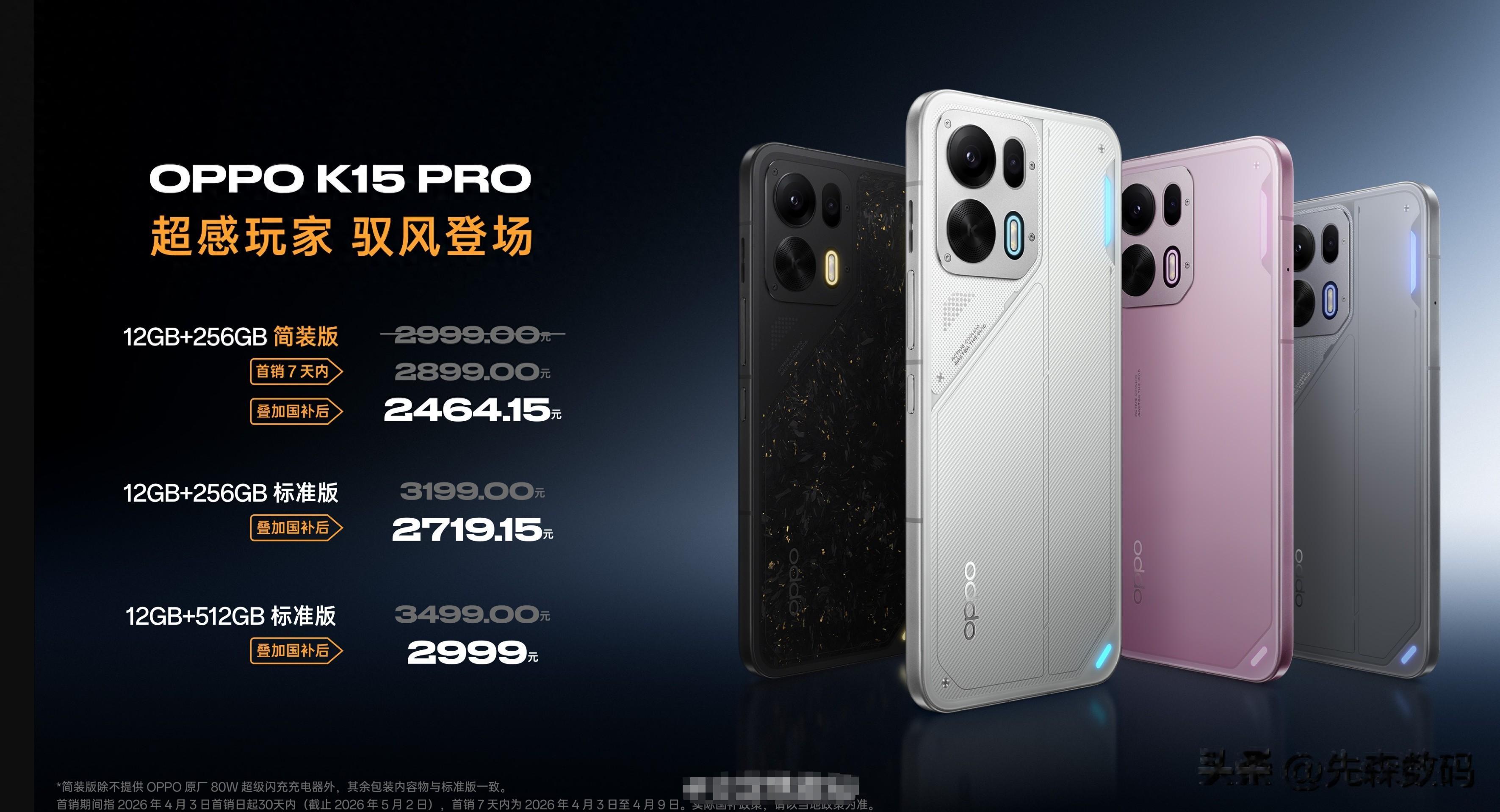 先看K15Pro价格:12+256G:简装版:2999元/首销7天内2899元