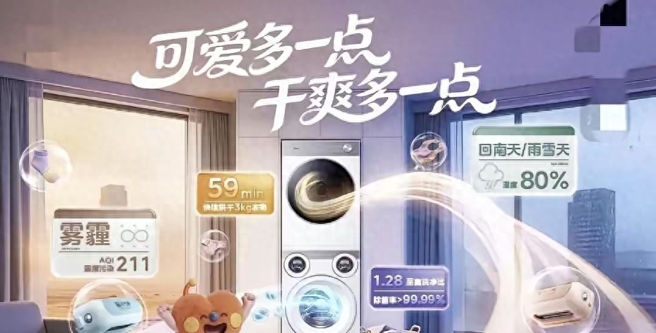 美的可爱多,真正解决天气痛点的,是热泵柔烘技术。不同于传统烘干的高温烘烤,它以约42℃低温贴壁烘干,温和穿透纤维不伤面料,却能快速带走湿气。回南天里潮得拎不动的被子、久晾不干的毛衣、容易变形的针织衫,放进去一键运行,取出来时蓬松柔软,带着像日晒一样的清爽感,完全没有霉味与黏腻感。热泵系统独立循环,不串味、不伤衣,阴雨天、梅雨季、冬季都能实现"洗完即烘、即烘即穿",彻底告别晾晒焦虑。