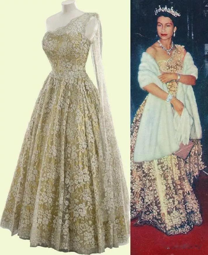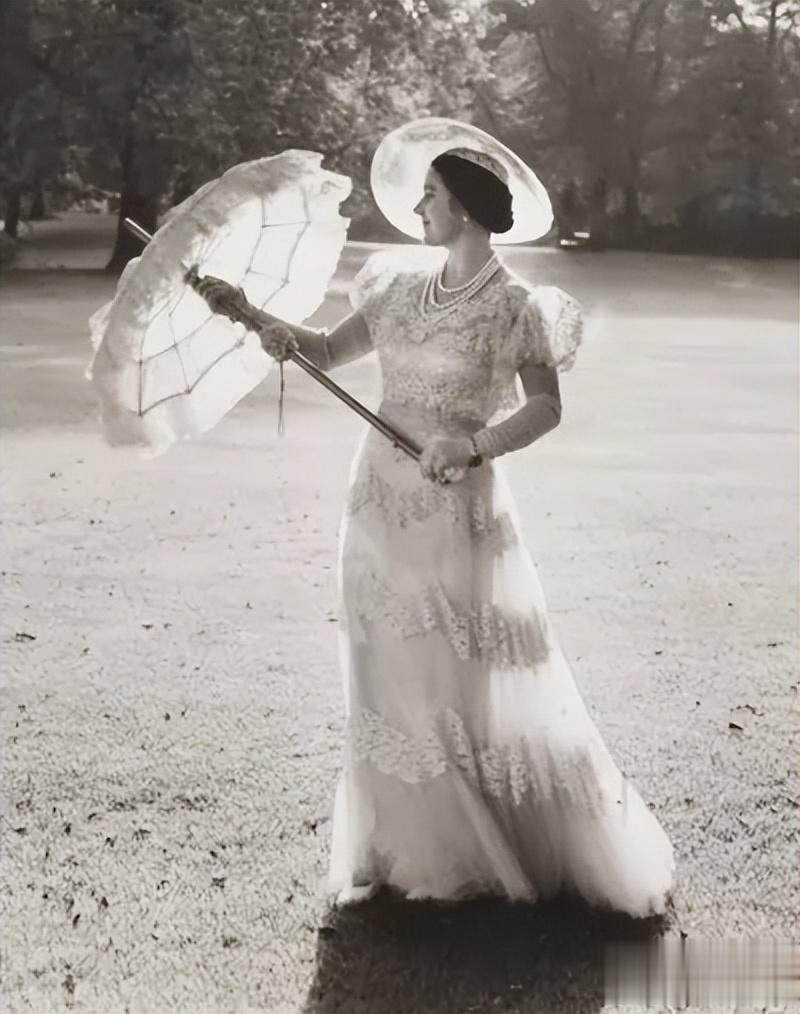 王太后早年的照片不太好找,这两件也算是她的经典礼服了