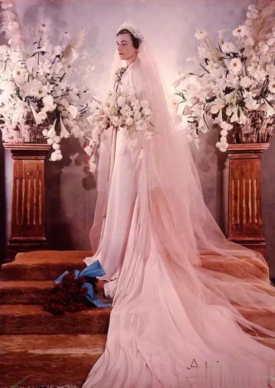 他和英国王室的合作要追溯到格罗斯特的爱丽丝(乔治六世弟媳),他打造了爱丽丝低调精致有内涵路线的浅粉色婚纱
