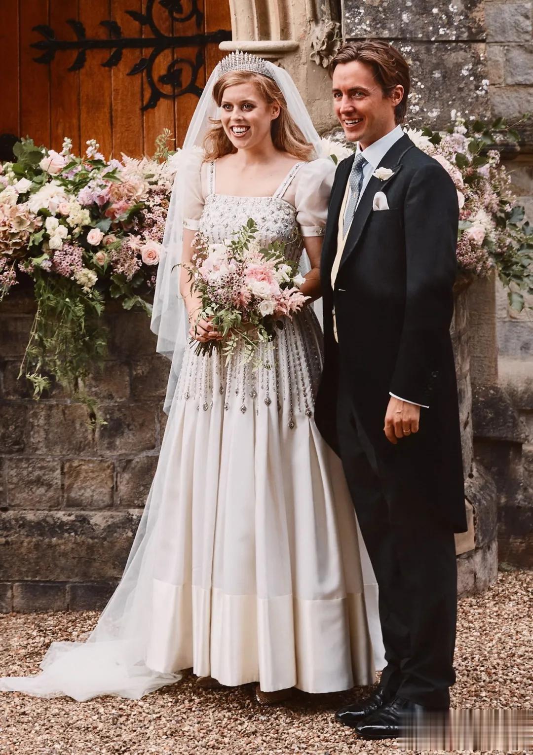 更让人万万没想到的是,诺曼逝世后41年,2020年6月,伊二孙女碧翠丝因为受疫情影响没办法按预期订婚纱,跟奶奶商量后,由御用裁缝Angela Kelly和设计师Stewart Parvin对诺曼的一条旧礼服进行了重新设计和调整,目测加上了泡泡袖和底部裙摆